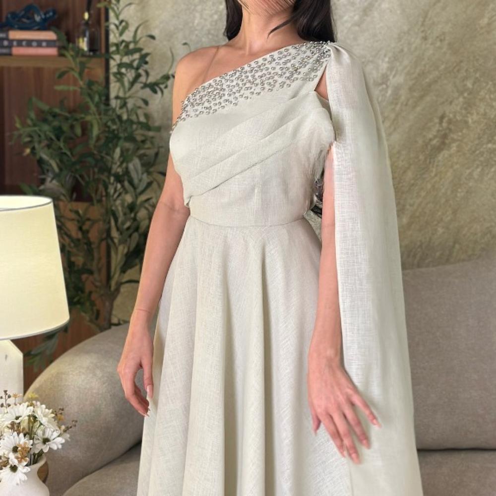 سم الموديل/ فستان سهره بني كتان لولو لونين